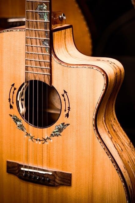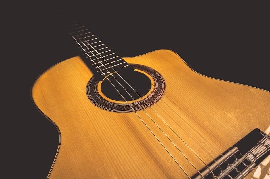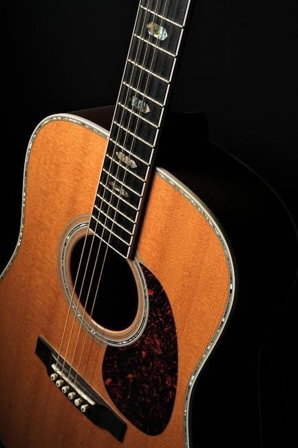 PDF guitar chord charts, such as “Hợp âm guitar cơ bản PDF”, demonstrate popular progressions like I-IV-V and ii-V-I, aiding practical application.